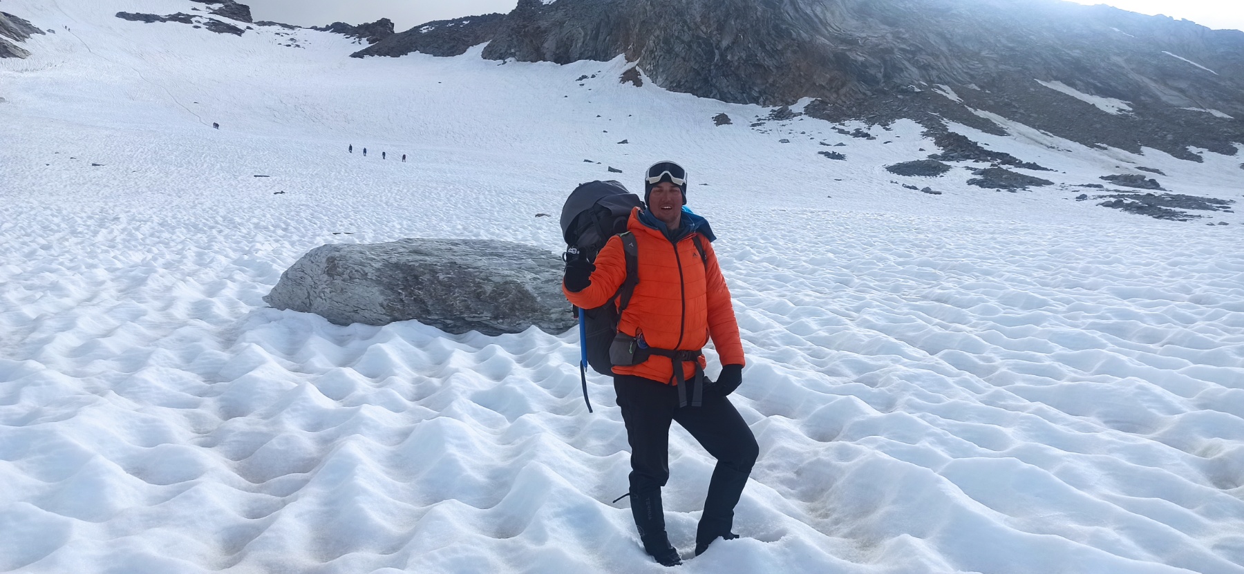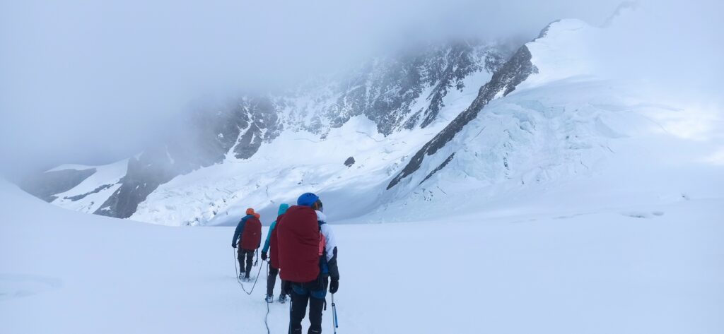 Ustajanje, pakovanje. Vožnja do parkinga Gondole Grossoney Le Trinite. Vožnja žičarom do Cole Betta. Pešačenje do planinarskog doma Quintino Sella (3550m). Do doma od žičare neophodno je oko 3h i 4,5 km. Odmor i priprema za završni uspon.