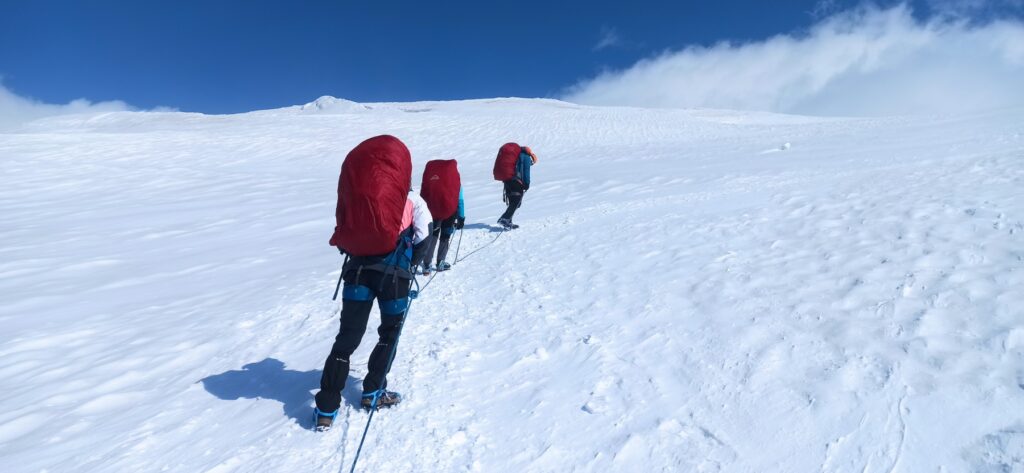 Do doma je neophodno savladati 700m uspona i 4,5 km. Za to je neophodno oko 3,5h. Po dolasku u dom odmor i odlazak na aklimatizaciju. Večera i noćenje.